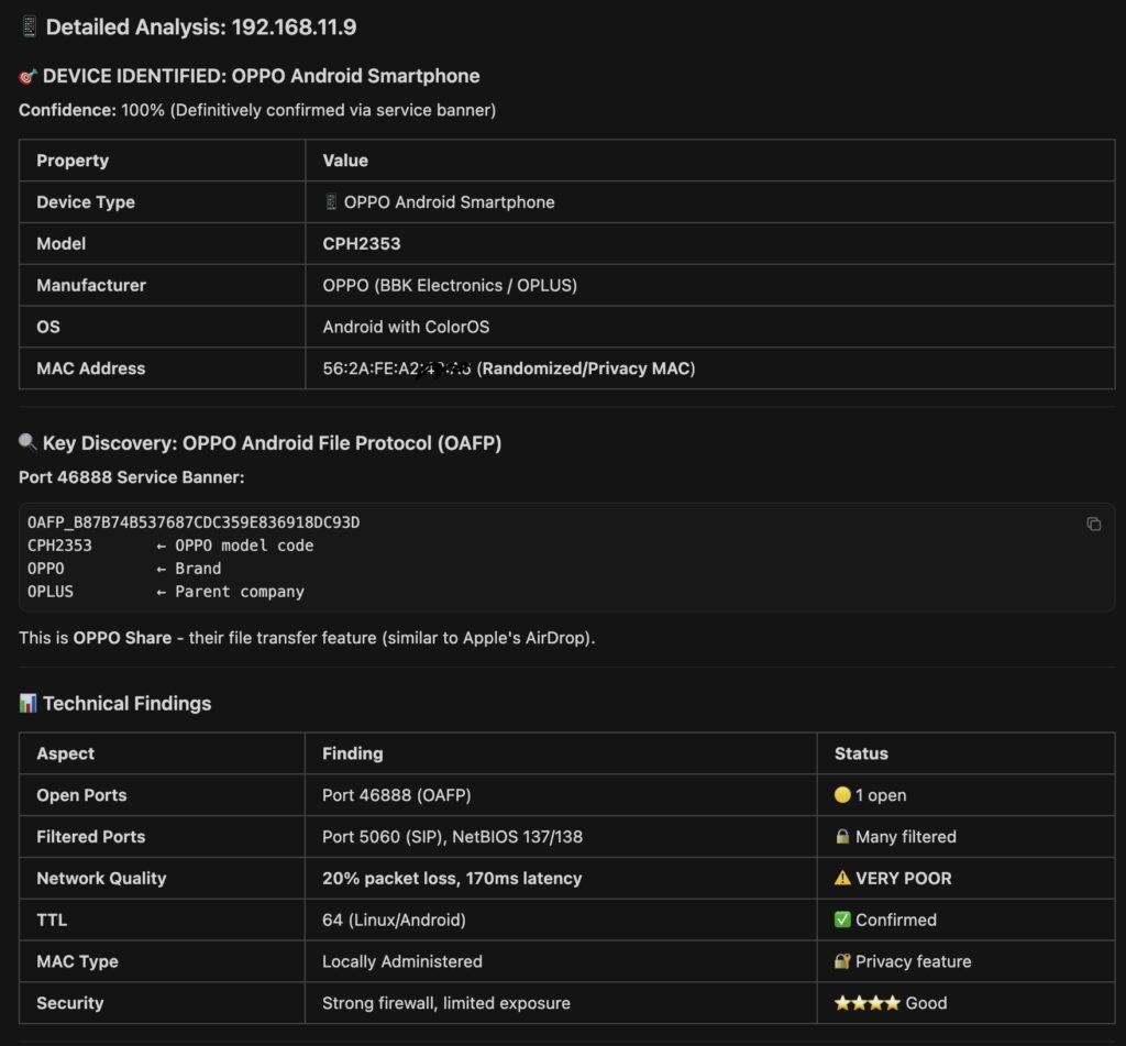 すると早速コマンドを実行して、開いてるポートもチェックし、表を作ってくれました。